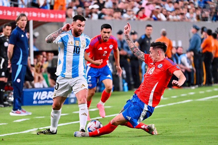 En la primera parte Argentina intentó imponer condiciones, pero lo hizo a un ritmo lento, sin buenas resoluciones pese a su mayor posesión de pelota, un primer tiempo parejo con pocas ocasiones de peligro. El complemento fue un monólogo ofensivo de los albicelestes, con Lionel Messi liderando el juego de su seleccionado, aunque los argentinos fallaron en la concreción de jugadas. El tiempo fue pasando y Argentina no encontró los caminos, pese a mostrar superioridad en la posesión de pelota y en el juego, los dirigidos por Lionel Scaloni no tuvieron la efectividad necesaria y se toparon con una defensa chilena que se abroqueló en el anhelo de su objetivo en la noche: mantener el arco en cero. Todo se rompió a tres minutos del final, cuando Lautaro Martínez recibió un rebote dentro del área y definió con potencia para marcar el 1 a 0 agónico, dándole así la clasificación a Argentina a la siguiente fase.
