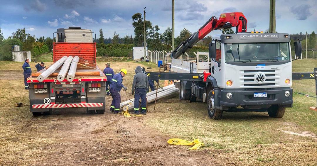En el marco del convenio que vincula a las Intendencias con UTE y la Secretaría Nacional del Deporte (SND) para la iluminación de canchas de fútbol de entrenamiento, llegaron al Club Independiente de la Liga Agraria las columnas y luminarias LED. El director de Descentralización de la Intendencia de Salto, Álvaro Gómez, estuvo presente en el campo de juego del club agrario en el momento del arribo.