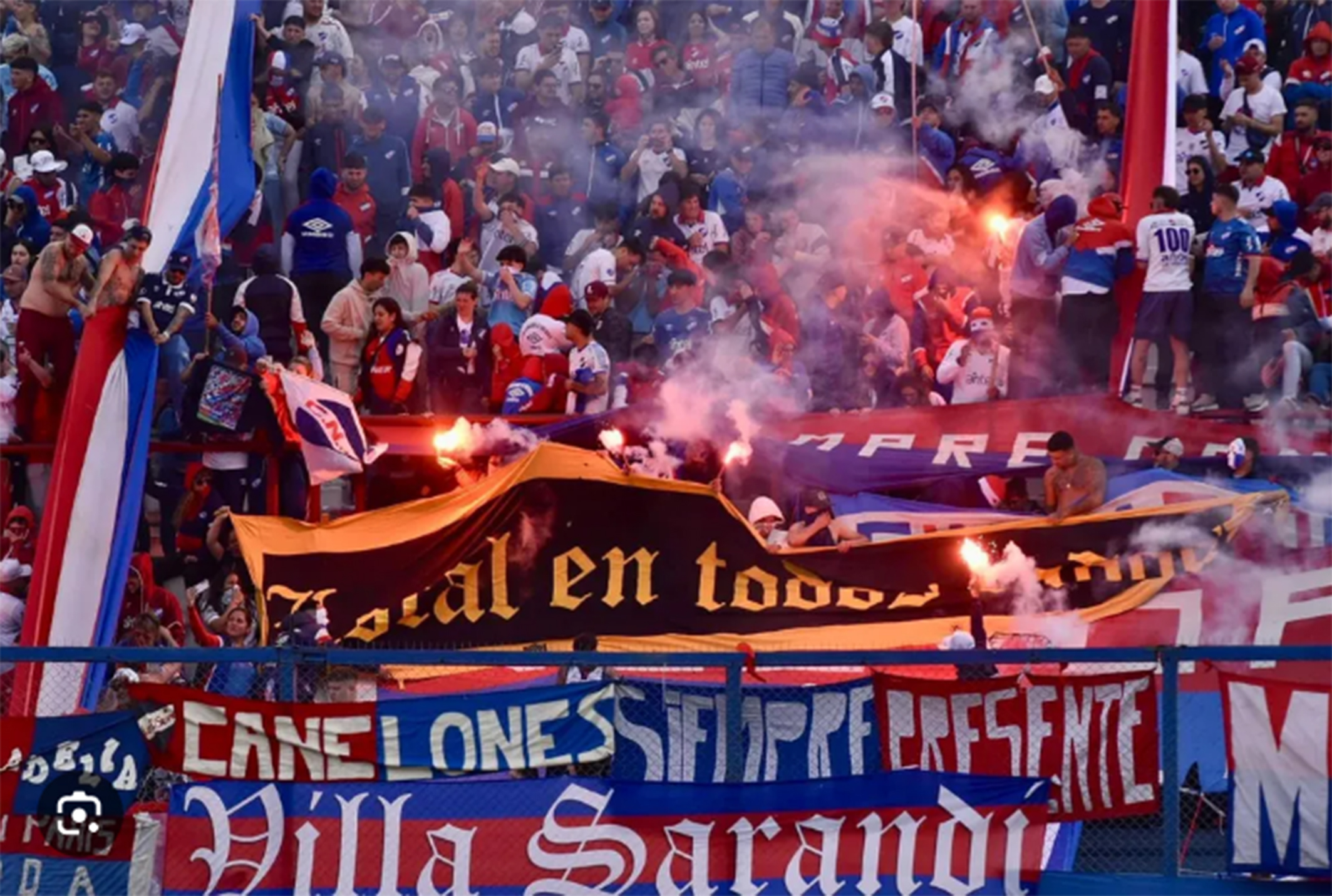 El reporte comienza con el ingreso de bengalas, banderas robadas a la hinchada del rival y expuestas en la tribuna, además de las bombas de estruendo que cayeron muy cerca de los jugadores de Nacional, Gabriel Báez y Lucas Sanabria.