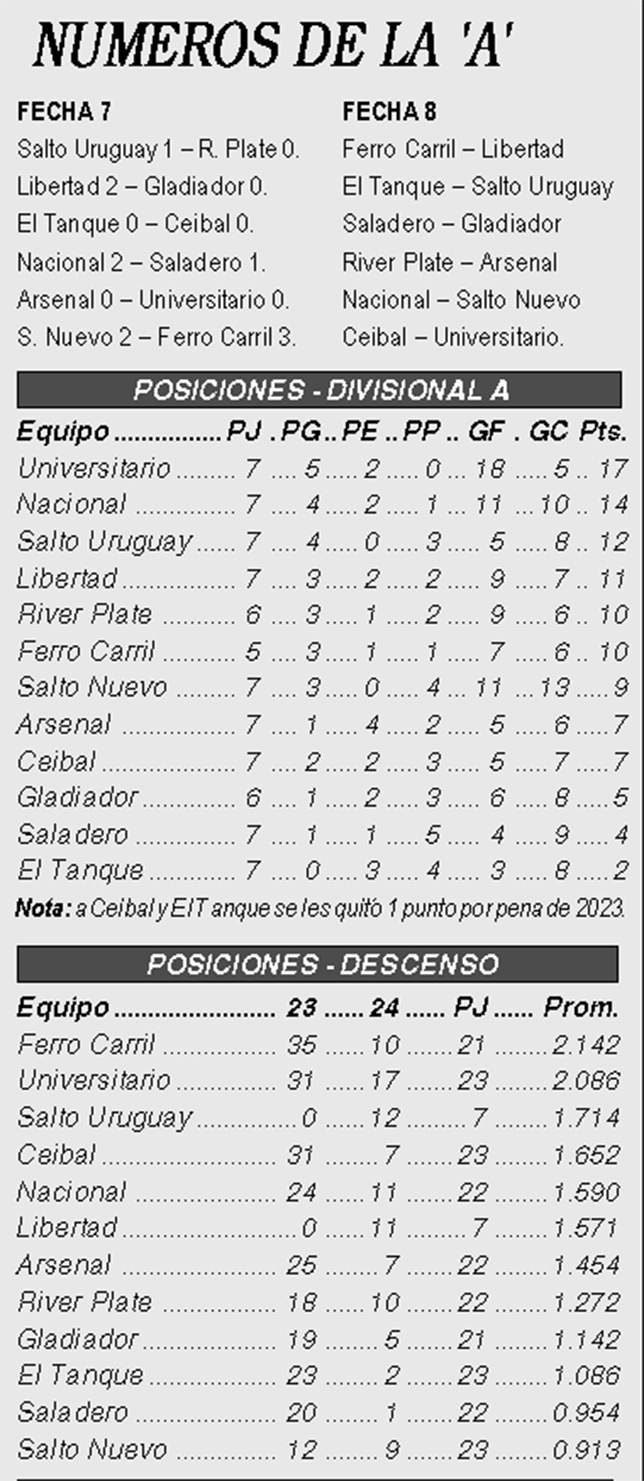 20.30 horas: Universitario – Chaná. Árbitros: César Loetti, Matías Fagúndez y Gustavo Barboza.