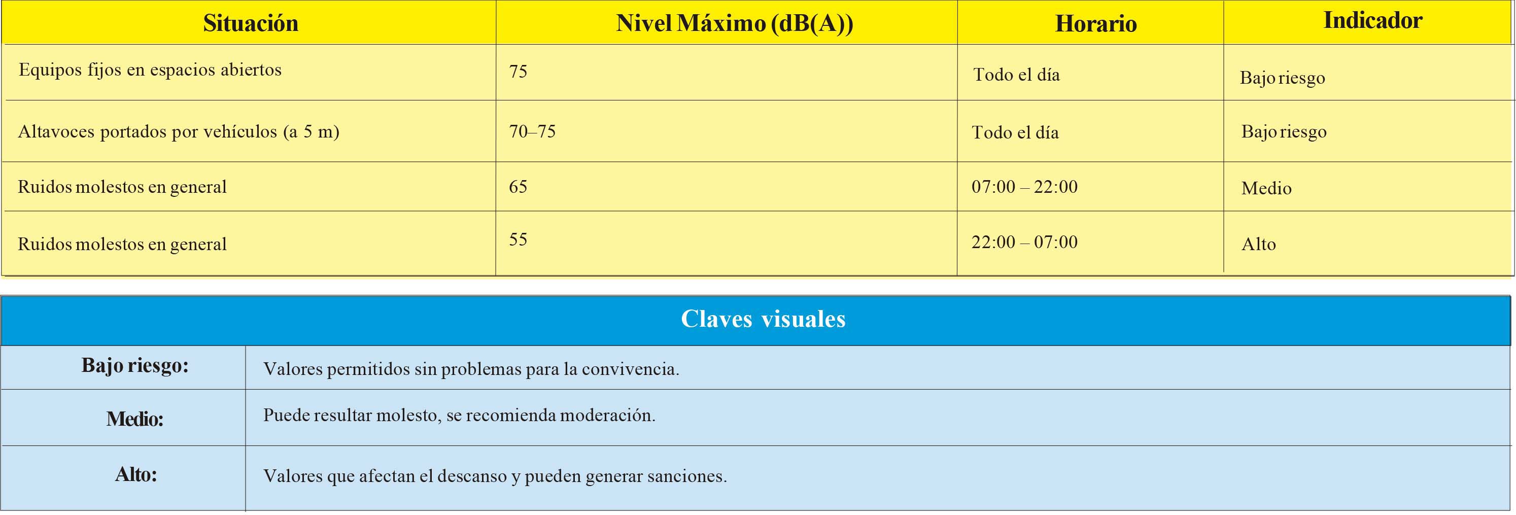 En la siguiente tabla se expresan los valores permitidos en nuestro departamento para la emisión de sonidos