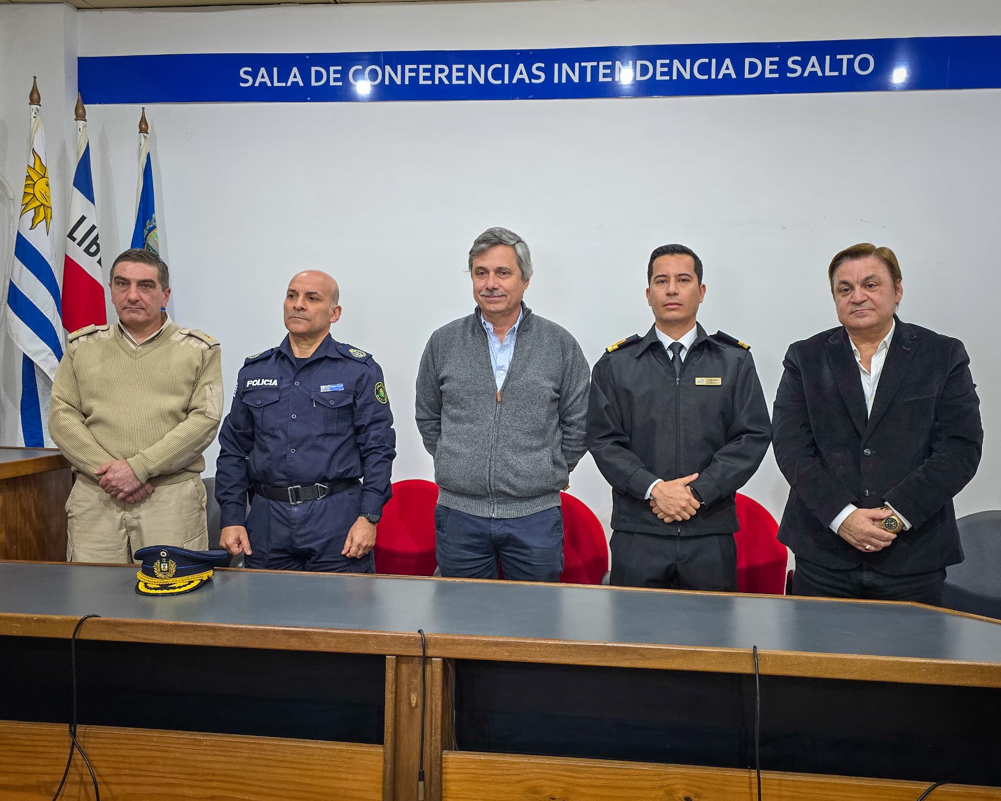 Se dieron a conocer los detalles del operativo especial que se implementará en Salto durante la Noche de la Nostalgia, con el objetivo de garantizar seguridad y movilidad a todos los que participen de los tradicionales festejos del 24 de agosto. En la conferencia de prensa estuvieron presentes el secretario general del Gobierno de Salto, Cr. Walter Teixeira Núñez; el jefe de Policía, comisario mayor (R) Fabián Severo; el prefecto del Puerto de Salto, Teniente de Navío Cristian Fagián; el director de Movilidad Urbana, Alberto Subí; y por Policía Caminera, el comisario mayor Pedro Guaraglia.