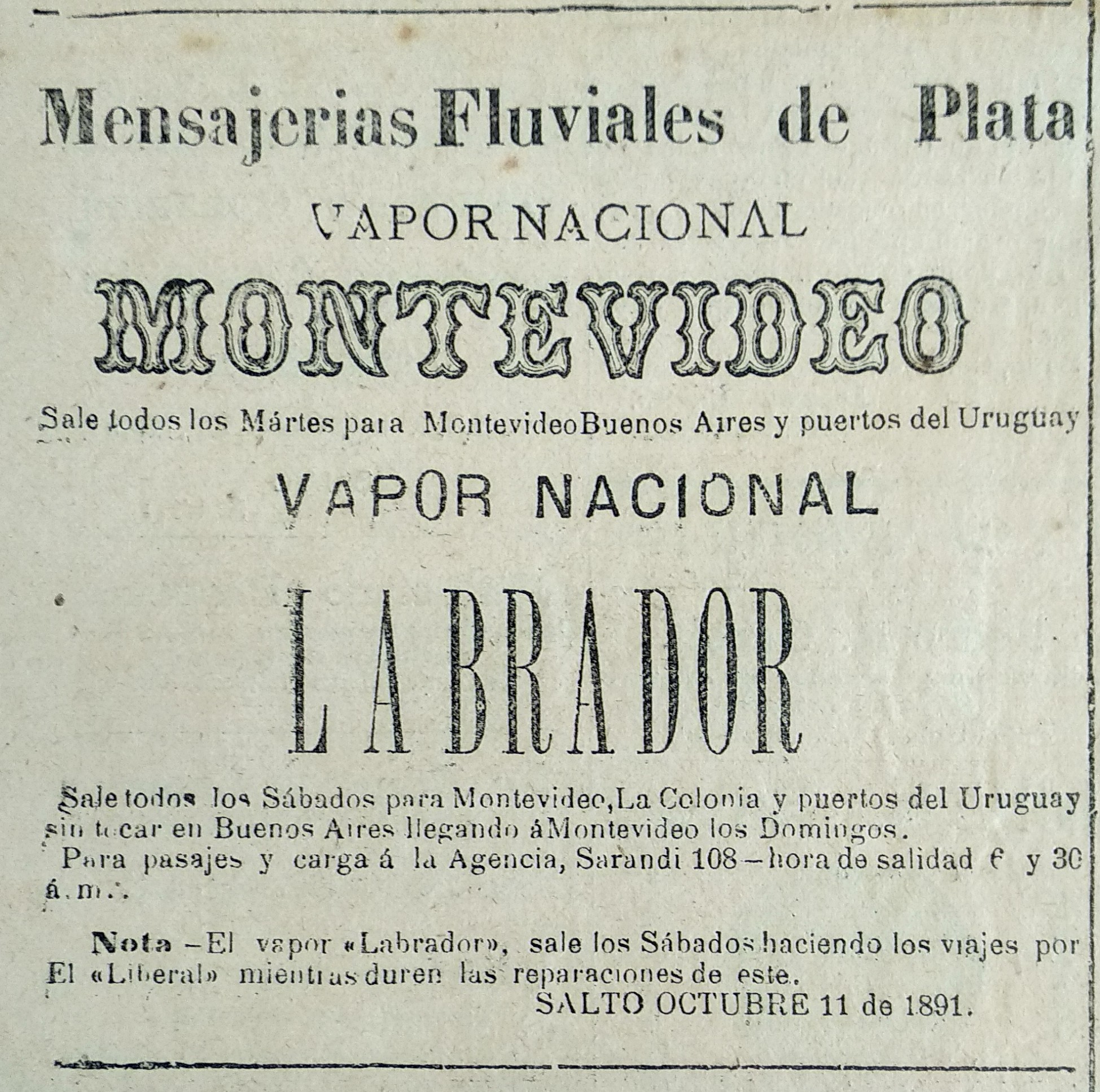 A pocos días después de la venta de los últimos buques «Olimpo» y «Mercurio» de las Mensajerías Fluviales (realizada en Buenos Aires, un 6 de agosto de 1888) Saturnino Ribes ordena a Climaco Beckar, su traslado a Escocia, para gestionar la construcción de dos vapores que se denominaría: Salto y Montevideo.
