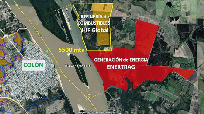 El Proyecto de Instalación de una Refinería de Combustibles Sintéticos, presentado por la empresa HIF Global y acordado por el estado nacional uruguayo a orillas del río Uruguay, en Paysandú, frente a la ciudad de Colón, sigue generado en las comunidades de la región diversas reacciones. Los factores comunes de preocupación son: que no se haya tenido en cuenta la ciudad de Colón, el tamaño de las instalaciones, la cercanía a la población y su estilo de vida, y el desconocimiento sobre aspectos que implica ese tipo de industria.