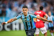 Luis Suárez sigue marcando la diferencia en el Gremio de Porto Alegre, en una nueva victoria de su equipo por el torneo estadual. Fue goleada 3-0 sobre Aimoré, que marcha último, por la quinta fecha del Campeonato Gaúcho.