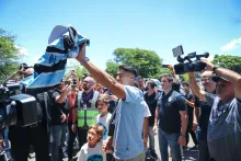Gremio de Porto Alegre recibió ayer a su nueva figura y lo hizo de una manera especial, no solo preparó banderas con la imagen del festejo característico de Luis Suárez para colgar en importantes puntos de la ciudad, sino que además informó a sus hinchas el horario en que arribaría el goleador sa