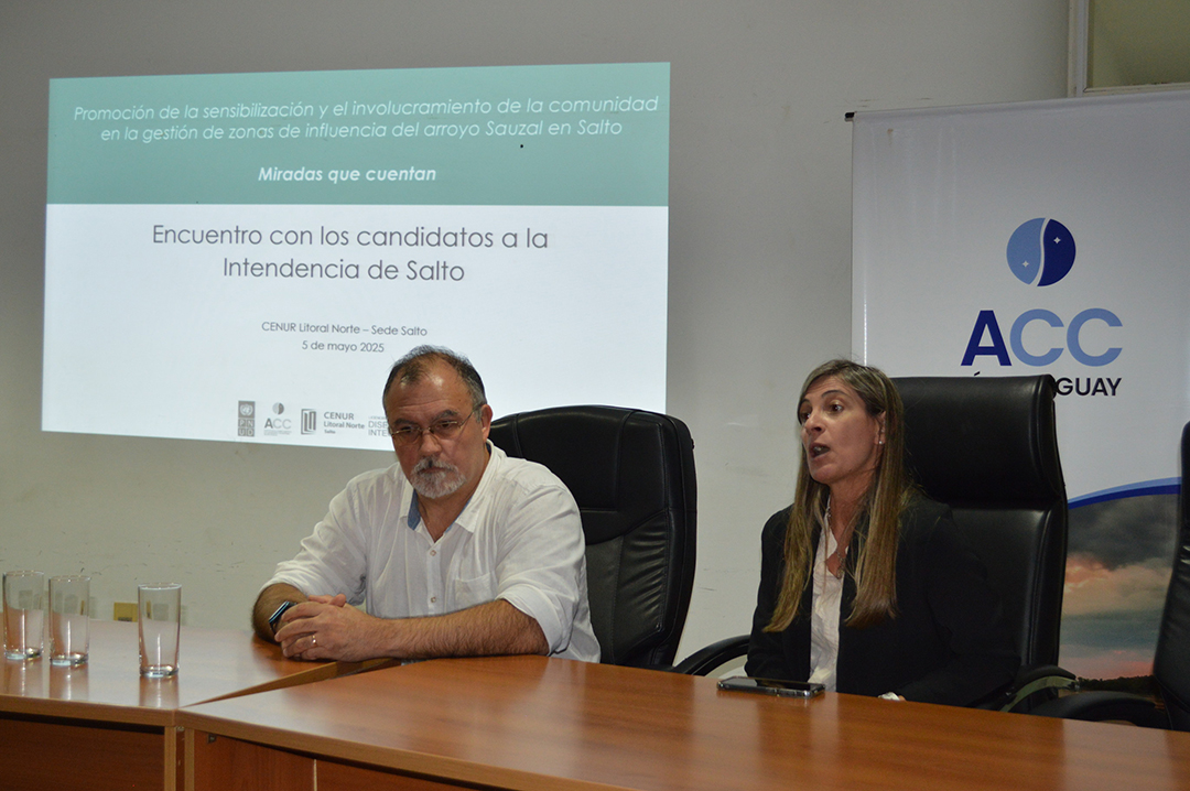 Bajo la convocatoria “Encuentro final con candidatos a la Intendencia de Salto”, los organizadores señalaron que “después de 6 instancias de intercambio con vecinas, vecinos e instituciones de tres zonas de la cuenca del arroyo Sauzal, llegamos al último encuentro del ciclo Miradas que Cuentan. Un espacio para compartir los aprendizajes, propuestas y estrategias construidas colectivamente con las comunidades, y presentarlas a quienes aspiran a conducir el gobierno departamental”. En ese sentido el espacio buscó “acercar la voz de la comunidad a los candidatos a la Intendencia de Salto, promoviendo una gestión más participativa, inclusiva y comprometida con los desafíos del territorio”. El prof. Juan Ferrer por la Udelar y Natalia García por ACC, fueron los encargados de hacer la presentación de los avances de resultados de los talleres que se vienen realizando sobre la temática.