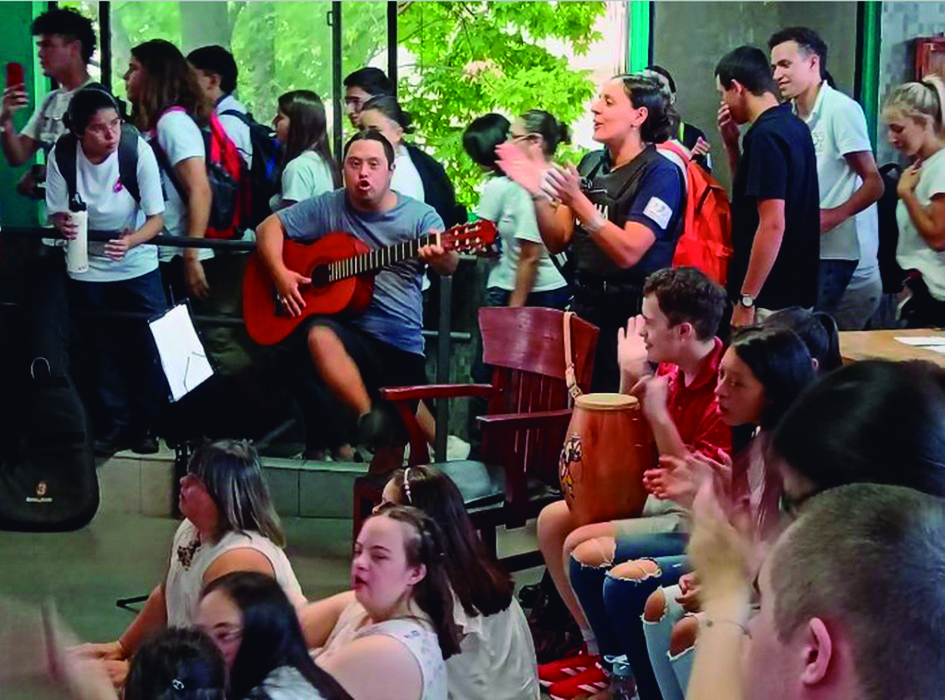 Se llevó a cabo un encuentro con 20 alumnos, padres, profesores e integrantes de Asociación Down, y 30 alumnos de 2° Bachillerato de Arte del Liceo IPOLL. Los alumnos de la asociación Down interpretaron diferentes canciones, acompañado de los instrumentos que tocan. “Las tonadas las terminaron cantando todos al unísono y se volvió un momento de mucha emoción y felicidad para todos los presentes. Se dedicaron palabras que surgían espontáneamente como ser felicidad, comprensión, amor y amistad.”, reza el comunicado de Policía Comunitaria. Cabe señalar que los chicos realizaron una muestra de los talleres de expresión que realizan y que van perfeccionando a medida que van encontrando espacios donde poder exponerlos.