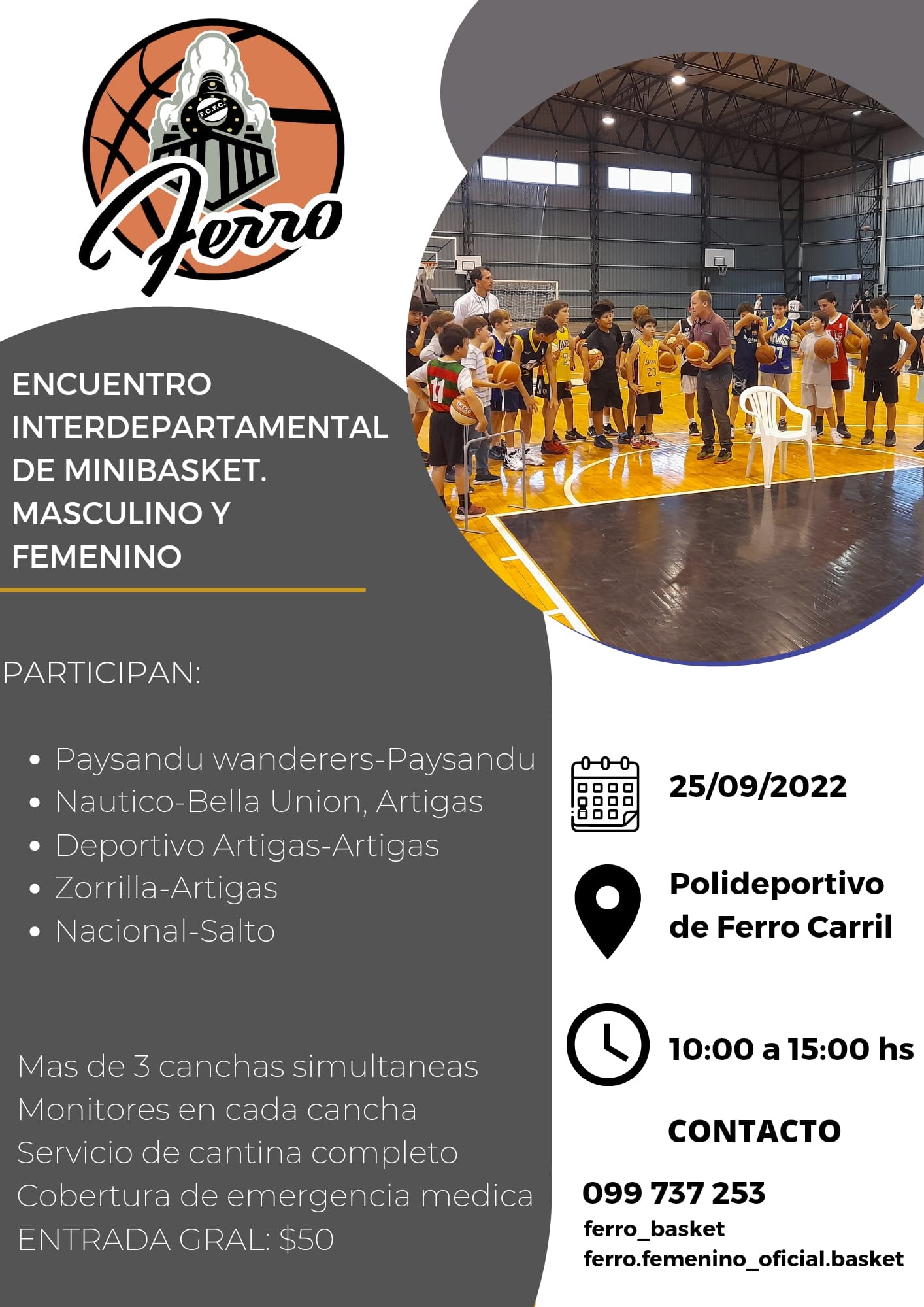 El domingo se llevará a cabo un encuentro de básquetbol formativo en el Polideportivo 1º de Diciembre de 1912 de Ferro Carril en rama masculina y femenina. Se jugará en categorías mosquito (6-7-8 años), premini (9-10) y mini (11-12). En Femenino será para menores de 12 años.