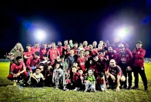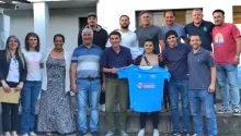 El coordinador del programa Presupuesto Participativo del Departamento de Desarrollo Social, Fernando Ferrari, junto a su equipo y funcionarios de la Intendencia, entregó al presidente del Club Palomar, Sebastián Francia, y a su directiva, el aporte económico asignado a la institución tras ser se