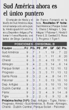 El empate de Hindú y el triunfo de Sud América dejaron al naranja solo en la punta. Hindú igualó 0-0 con Fénix y Deportivo Artigas y Palomar 1-1 en el Racedo, con tantos de Diego Cardozo y de Franco Fornaroli en la hora. Resultados 9ª fecha: Sud América 2 Parque Solari 1, Chaná 2 Almagro 1, Dep.