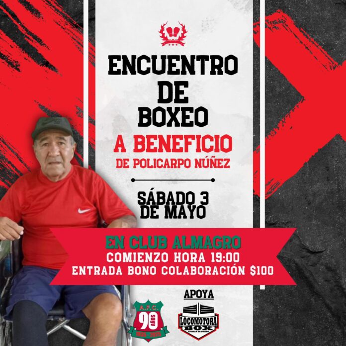 Para hoy Sábado 3 de Mayo se ha organizado una velada de boxeo en la sede del club Almagro, que servirá para recaudar fondos a beneficio de Policarpo Núñez, reconocido preparador físico y preparador de varios púgiles profesionales y amateurs, también de otras disciplinas deportivas en nuestro medio y de funcionarios policiales salteños.