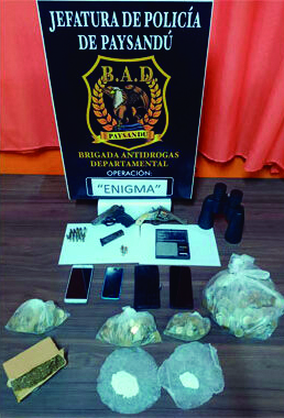 Un hombre de 43 años fue condenado al comprobarse su responsabilidad al frente de una boca de venta de droga que funcionaba en la zona suroeste de la ciudad. De acuerdo a lo informado por Jefatura de Policía, la Brigada Departamental Antidrogas supo de la existencia de una boca de venta de droga activa en una finca de Ledesma al sur, donde era recurrente la presencia de diferentes personas que concurrían a adquirir dosis de cocaína y marihuana. Se puso en conocimiento a la Fiscalía Letrada de Tercer Turno, quien habilitó que se continuara con la investigación, en el marco de la operación Enigma. Una vez avanzados los trabajos de recolección de indicios y demás elementos probatorios, se efectuó un allanamiento en la finca, para el que se contó con apoyo del Grupo de Respuesta Táctica y la Unidad de Investigaciones. En la ocasión, detuvieron a una mujer de 49 años y fue incautada una pistola calibre 38 con municiones, un revólver calibre 38, 27 cartuchos de diferentes calibres, cinco celulares, una balanza digital, una alcancía de lata con un total de 7.147 pesos uruguayos y diferentes envoltorios que sumaron 352 gramos de marihuana prensada y 38 gramos de cocaína. En tanto, se libró orden de captura para el dueño de casa –poseedor de antecedentes penales–, quien fue detenido a las pocas horas. Una vez finalizada la audiencia en la sede penal, se dispuso la formalización de la investigación y posterior juicio abreviado para Néstor Fernando Rodríguez Robledo, quien resultó imputado y condenado —por sentencia ejecutoriada por consentimiento– por “un delito continuado de venta o negociación de sustancias estupefacientes en concurrencia en régimen de reiteración real, con un delito de tráfico interno de armas de fuego y municiones”; imponiéndole como pena 2 años y 10 meses de penitenciaría de cumplimiento efectivo. Por su parte, la mujer recuperó la libertad.