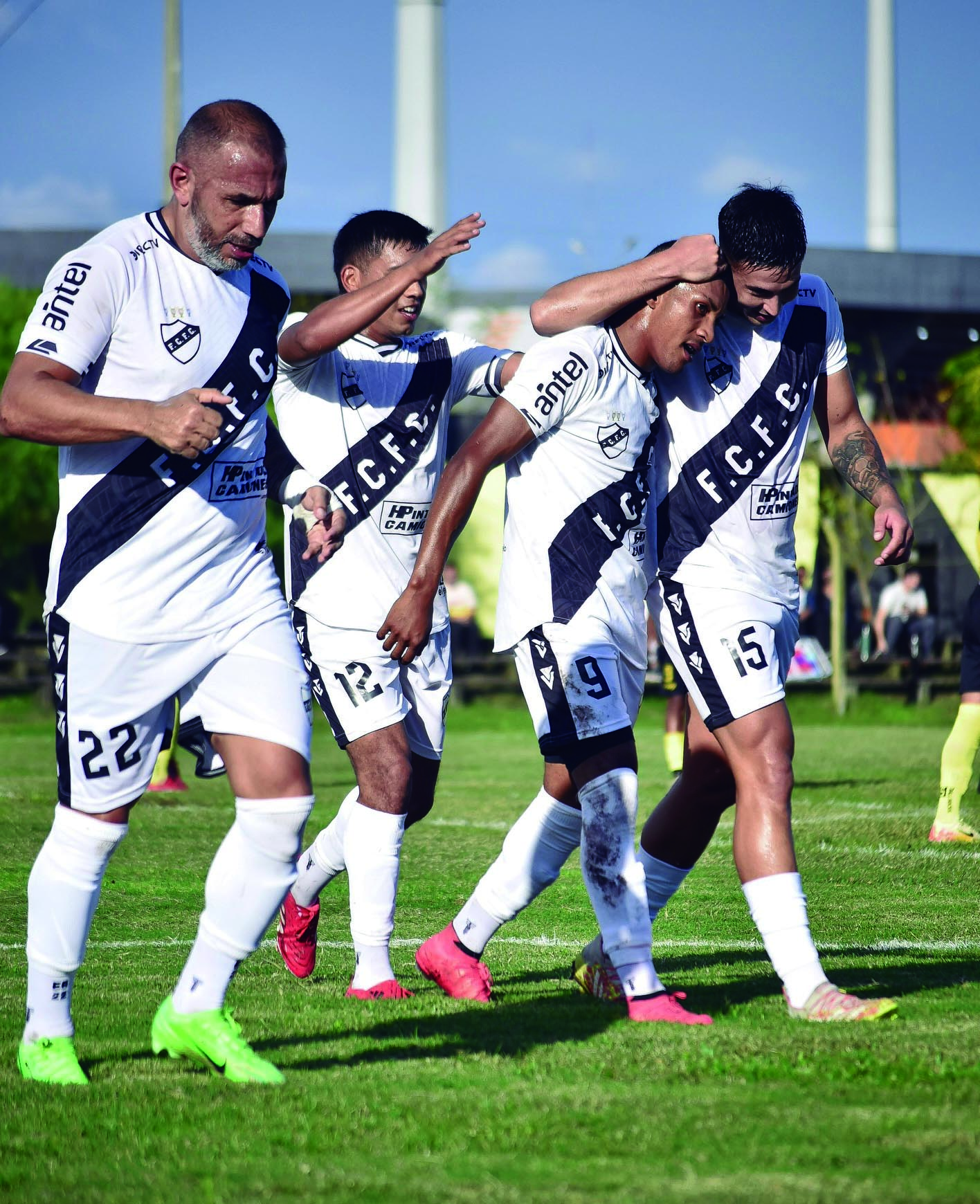 Foto: Festejo de uno de los goles de Natanael Tabares para la tercera victoria ferrocarrilera en Copa. Foto ‘Ferro Carril FC’