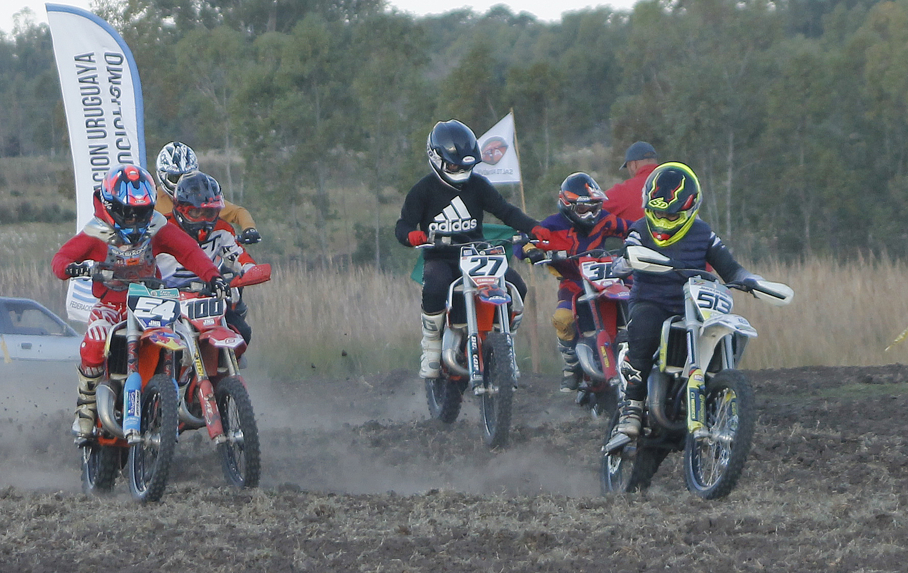 La jornada sabatina ya sirvió para disfrutar de los primeros saltos y aceleradas del motocross nacional, que llega a nuestra ciudad para disputar la cuarta fecha. Más de 120 pilotos de todo el país y también del extranjero corren en la nueva y muy buena pista que preparó el Salto Automóvil Club (SAC) en el Autódromo Ciudad de Salto, denominada Néstor Bisio.
