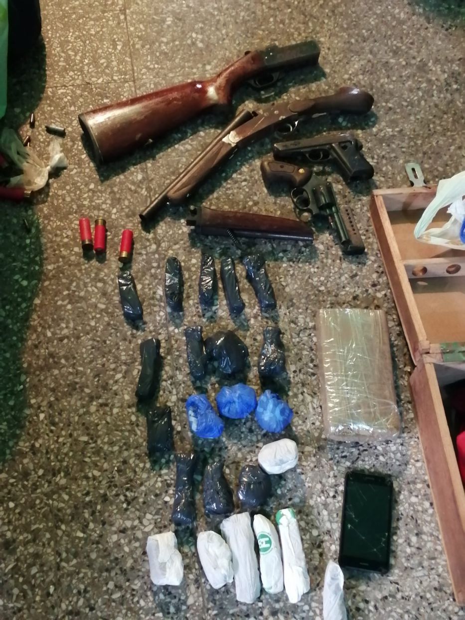 Dos personas de 20 y 41 años fueron detenidas en el marco de un operativo policial en el barrio Marconi, informaron desde el Ministerio del Interior. La vivienda que se allanó está ubicada en Pasaje H y Enrique Castro, en Montevideo. Allí se incautaron varias armas, como dos escopetas, un revólver y una pistola calibre 32. Además, varias municiones que van desde los 9 milímetros hasta cartuchos de un arma calibre 32. También se encontraron drogas, que presuntamente serían marihuana y cocaína, a pesar de que las autoridades realizarán el análisis correspondiente para determinar qué son. Los dos detenidos fueron puestos a disposición de la Justicia.