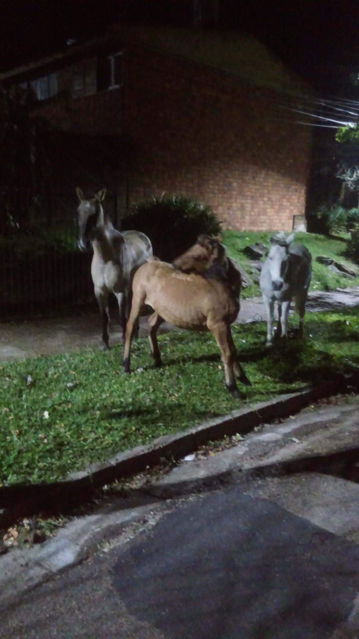 Un lector de Cambio nos acerca esta foto que registró en el Barrio San Martín el día domingo en horas de la noche donde se observa a tres caballos pastando en la vereda y según nos dijo había otro en la vereda de enfrente. Una y otra vez se ha comentado que el hecho de que haya equinos sueltos en la vía pública constituye un riesgo para quienes transitan no solo en vehículos sino también a pie y sobre todo en horas de la noche donde es poco probable que te encuentres con caballos sueltos. Sin embargo pasa y por lo que se comenta cada vez con mayor asiduidad.