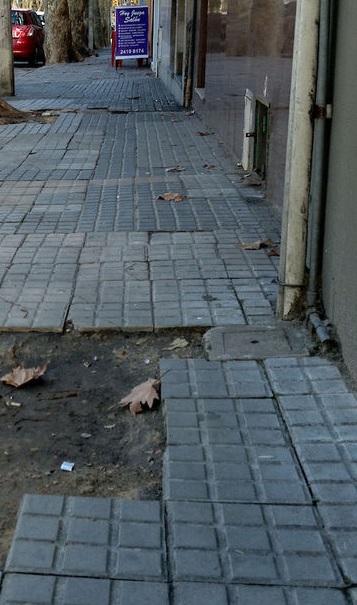 Sabido es que hay tramos de veredas en la ciudad que están en muy malas condiciones por la falta de baldosas o simplemente por roturas que dejan tramos muy complicados para la circulación de peatones. Son muchas las zonas donde hay problemas con veredas, pero en este caso nos vamos a referir a Rivera casi Beltrán, donde hay un tramo de baldosas en mal estado que generan dificultades para personas con deficiencia de movilidad e incluso ya hubo quienes han caído en ese lugar. Al igual que en otros reclamos que se han recibido por las veredas, lo que se pide es que se aplique un plan que tenga como objetivo el arreglo de las aceras en toda la ciudad.