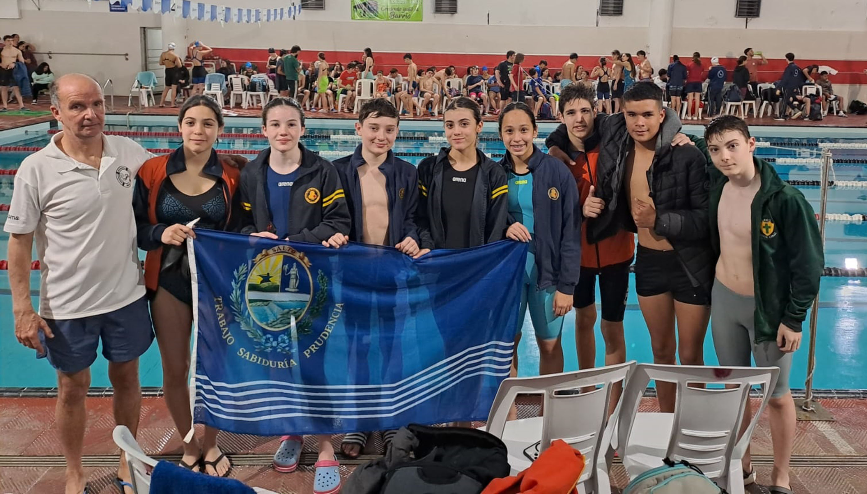 El fin de ssemana pasado Salto participó en la etapa de natación de los Juegos Deportivos Nacionales, en la piscina del Club Olimpia de Montevideo. El evento es organizado por la Secretaría Nacional de Deportes, Educación Pública e intendencias departamentales, compitiéndose en las categorías sub-14 y sub-16, damas y varones. El plantel salteño estuvo compuesto por: Renata Da Fonseca, Candela Molina, Yael Stolvas e Ignacio Carriquiri por Colegio y Liceo Crandon; Eva Machado por Liceo Nº5; Kevin Cattani por Colegio y Liceo Santa Cruz; Juan Llovinsky por Liceo Nº4 y Santiago Salayeta por la Escuela Técnica de Salto, dirigidos por el profesor Javier Ferrari.
