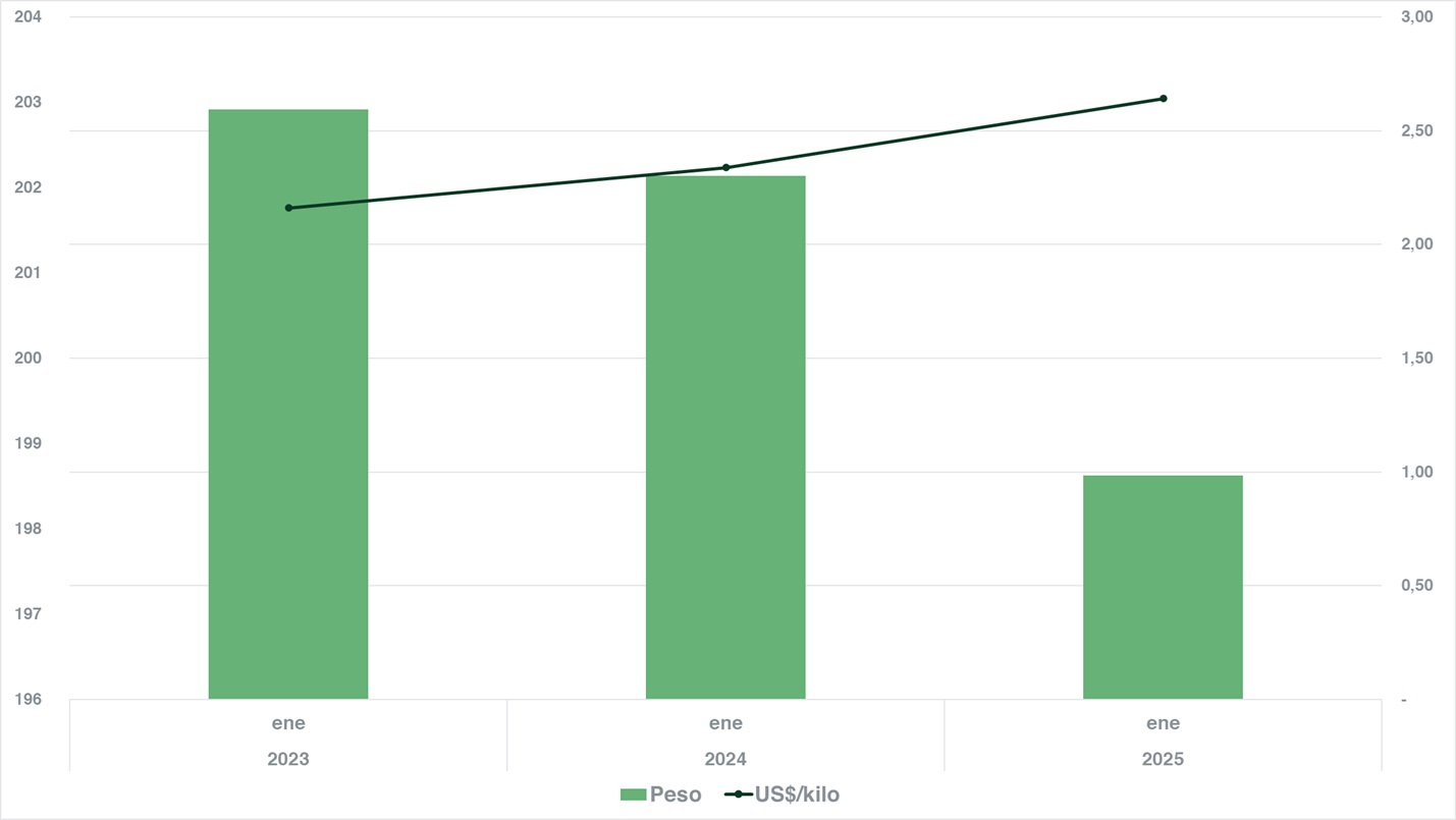 Los valores alcanzados en este mes de enero, superan también los las referencias de 2023, cuando los terneros cotizaban a US$ 2,16 al kilo y US$ 438 al bulto, y pesaban 203 kilos de promedio.