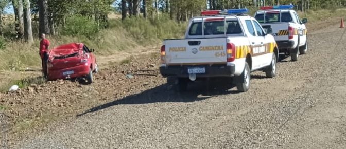 A la hora 6:25 del sábado efectivos de la Brigada Departamental de Seguridad Rural y de la Comisaria Seccional Décima concurrieron a Ruta Nacional Nº 4 “Andrés Artigas” aproximadamente a 10 kilómetros de la entrada a la localidad de Lavalleja por un siniestro de transito con vuelco. Una vez en la ubicación indicada es entrevistado un hombre de mayor de edad ileso quien hace saber que en circunstancias que se dirigía hacia la ciudad de Salto conduciendo el auto Chevrolet Agile, ingresa a un tramo en reparación sobre el kilómetro 97 perdiendo el dominio del auto volcando. Llevaba como acompañante a su esposa mayor y a su nieto menor de edad.