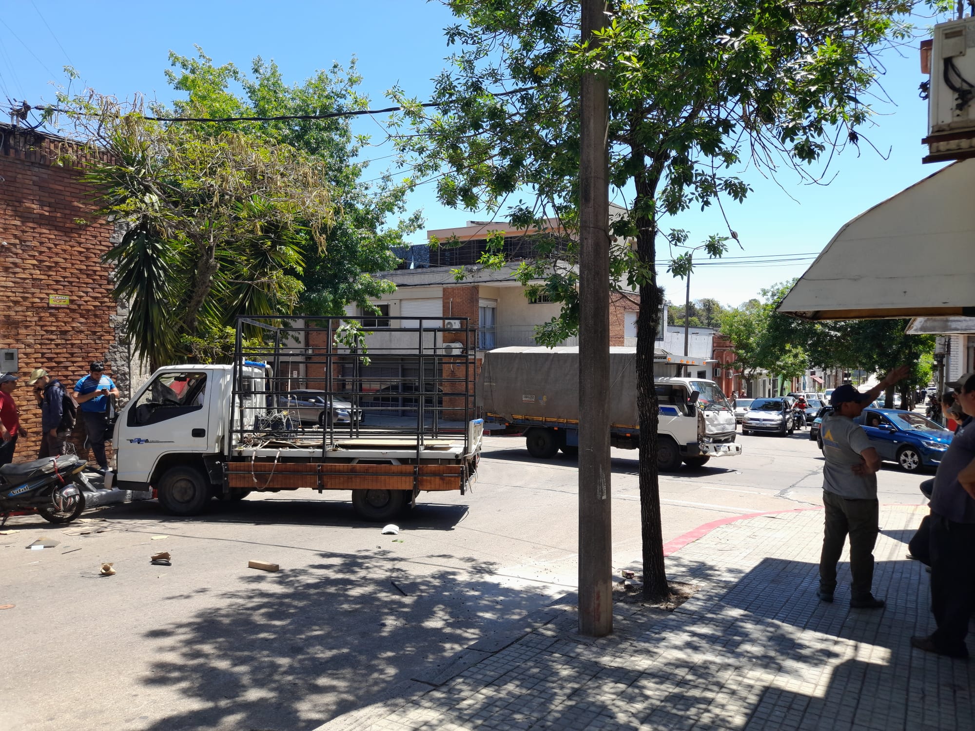Por otro lado se registró una violenta colisión en la esquina de Brasil y Julio Delgado entre dos camiones dedicados al reparto de mercaderías. A pesar de lo fuerte del impacto no hubo lesionados de entidad. Al lugar concurrieron efectivos del Cuerpo Inspectivo.