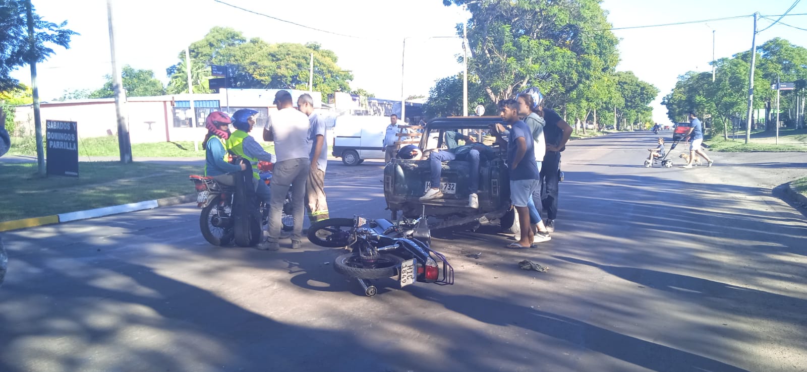 Al mediodía de ayer se registró un siniestro de tránsito en calle Bolivia y Joaquín Suárez, entre una camioneta que era conducida por una mujer mayor de edad y una moto conducida por un hombre mayor de edad. Como consecuencia del impacto resultó el conductor del birrodado lesionado.