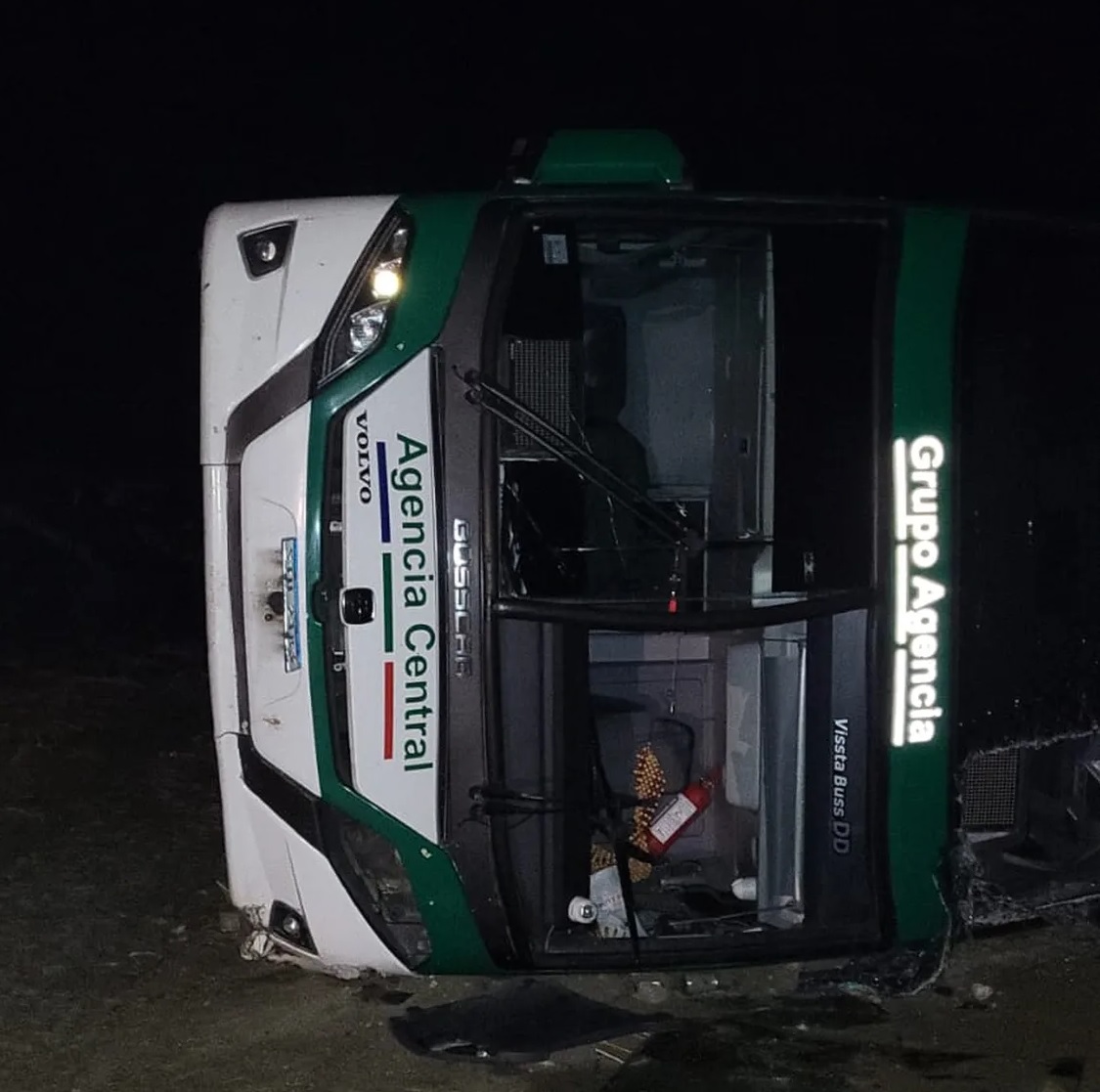 En la madrigada de ayer sábado tuvo lugar un siniestro de tránsito en ruta 3 en el que 15 personas resultaron heridas. El vehículo de la empresa Agencia Central había salido de la terminal de Salto Shopping a la hora 00:00 y por causas que se vienen investigando volcó y quedó sobre su lateral izquierdo en faja natural. El accidente ocurrió sobre la hora 4:45 en el kilómetro 197 de la ruta 3, en el departamento de Flores. Según el informe primario de la Policía Caminera, al que accedió Subrayado, 15 personas resultaron con lesiones “de carácter leve”. El siniestro de tránsito ocurrió cuando el ómnibus circulaba de norte a sur, con pasaje completo, según Policía Caminera el conductor del coche, de 59 años, arrojó resultado 0 en espirometría. Los lesionados presentan politraumatismos y fracturas de diversa índole. Ninguno de ellos reviste riesgo de vida.