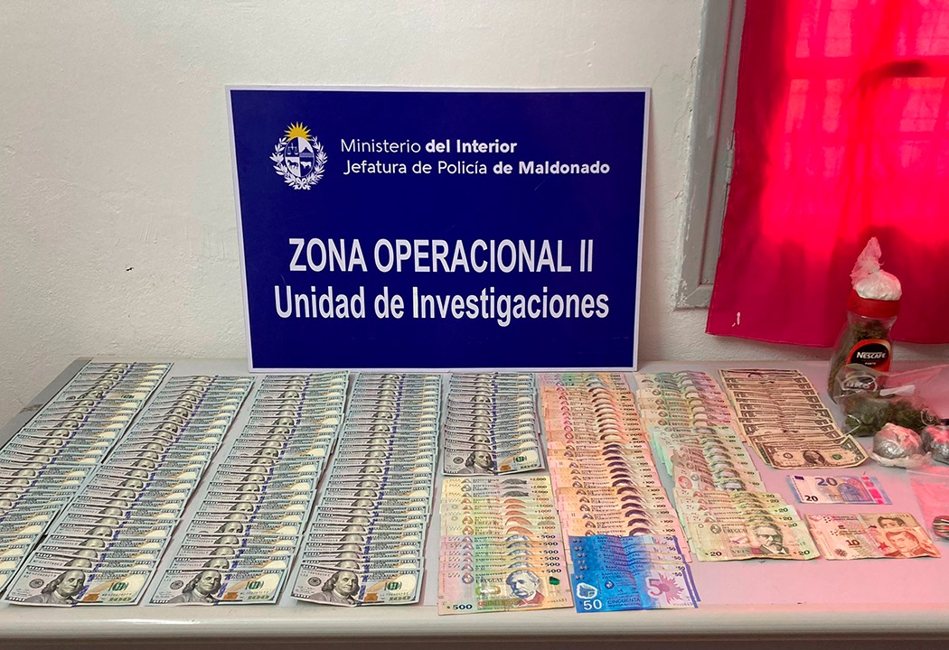 Personal policial de la Zona Operacional II de la Jefatura de Policía de Maldonado trabajó en conjunto con visualizadores de las cámaras de videovigilancia del departamento para identificar a una banda dedicada a hurtos en inmobiliarias, locales comerciales, vehículos y edificios. El último de ellos fue perpetrado en un edificio de Punta del Este ubicado en Rambla Williman y París donde los autores ingresaron mediante escalamiento y tras forzar puertas corredizas. Hurtando de uno de los apartamentos 190.0000 dólares, lingotes de oro y plata, relojes y joyas varias. Mediante el análisis de las imágenes de las cámaras de videovigilancia de la zona, los investigadores lograron identificar el vehículo en el que circulaban los autores, pudiéndolos identificar y vincular a otros delitos de hurtos. Bajo orden emitida se realizaron ocho allanamientos en diferentes localidades de Maldonado. En éstos participaron efectivos del Grupo de Reserva Táctica, de la Unidad de Respuesta Policial de Maldonado, Hechos Complejos, Narcóticos, PADO y Seccionales 1ra, 6ta, 10ma, 12va y 13va. Allí se incautaron cuatro vehículos, incluido el identificado en el último hecho, un cofre de seguridad que contenía 11.800 dólares y 300 gramos de cocaína (éste fue abierto cuando se presentó en sede policial uno de los implicados que no había sido encontrado en su domicilio), 8.500 dólares, 19.500 pesos, 30 gramos de cocaína, un recipiente con marihuana, joyas, perfumes y carteras. En total se detuvieron a seis personas, pero una fue dejada en libertad.