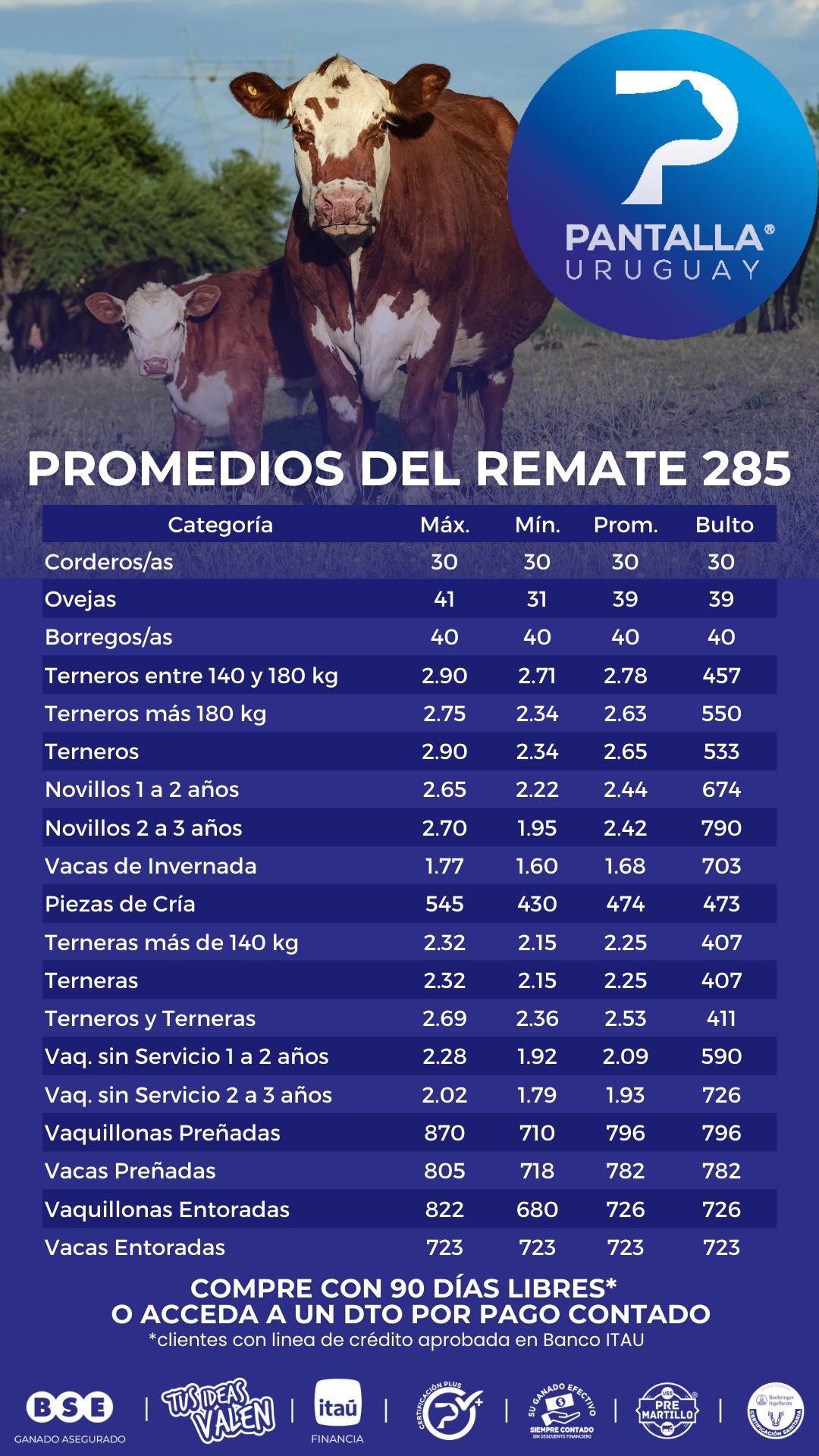 El consorcio de rematadores, Pantalla Uruguay, realizó este martes su primer remate del 2025, colocando el 86% de su oferta de 4.382 vacunos. En el caso de los ovinos se comercializó el 88% de las 2.040 cabezas consignadas.
