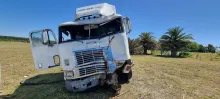 En grave estado se encuentra el conductor de un camión semirremolque que transportaba un contenedor refrigerado cargado de carne de exportación, el cual sufrió un accidente en el kilómetro 419 de la ruta 3, pasada la 1 de la madrugada de ayer viernes.