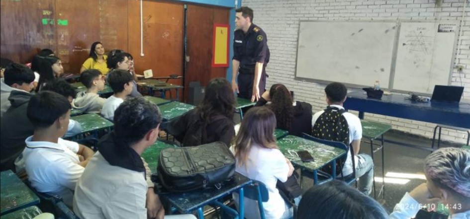 Ayer en las en instalaciones del Liceo N.º 2, ubicado en Avenida Paraguay 551, personal de Policía Comunitaria Orientada a Problemas (PCOP) junto a personal de Comisaria Especializada en Violencia Doméstica y Género realizaron un taller sobre Violencia Doméstica.