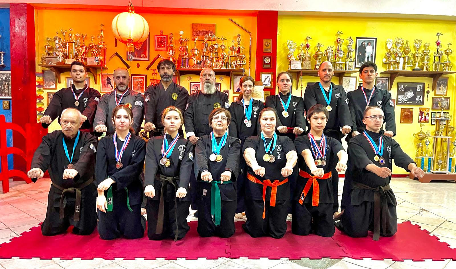 El pasado domingo 19 de Mayo se realizó el primer torneo de Kung Fu estilo Lung Tao del año 2024, organizado por el Director Maestro Ricardo Villarreal 7º Dan y el Sub Director Prof. Moisés Villarreal 4º. El evento se llevó a cabo en nuestra ciudad, en el gimnasio de Nacional. Se comenzó a las 13:30 horas, iniciando con las palabras del Maestro Villarreal, en el marco de los 40 años que celebra la escuela. Fue un momento muy emotivo donde recordó sus inicios en las artes marciales , cuando fundó la escuela, sus primeros pasos en las competencias internacionales, el legado de su Maestro: Germán Bermúdez Arancibia 10º Dan y la creación de su propio estilo Lung Tao. Emocionando a todos los presentes con su relato de experiencia de vida y profesional. Luego el Maestro sorprendió a los campeones sudamericanos del año pasado USKA Alliance 2023 haciéndole reconocimiento por su gran desempeño. La escuela acostumbra siempre al principio del torneo realizar una demostración con todos los competidores presentes, exhibiendo el estilo Lung Tao con niños, jóvenes y adultos de todas las categorías.