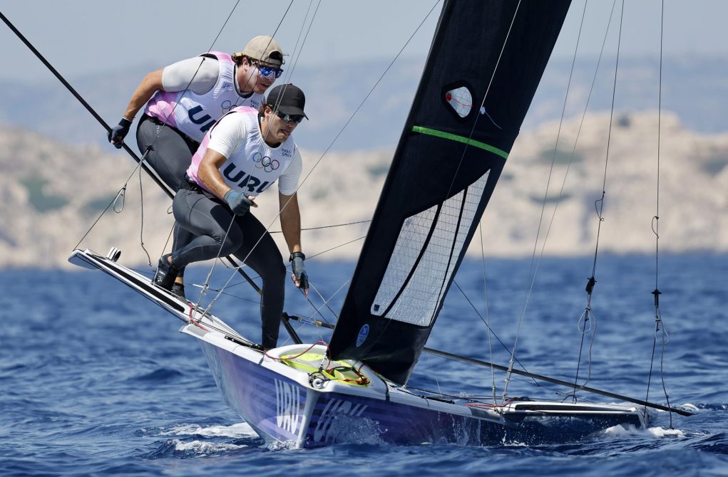 La carrera pasó para la jornada de hoy, a las 5.00 horas, si las condiciones climáticas lo permiten. La embarcación uruguaya tiene una mínima chance de subir al podio y confía en al menos meterse entre los ocho mejores para ganar el diploma olímpico. Para eso deberían finalizar por encima de los veleros de Países Bajos y Suiza.