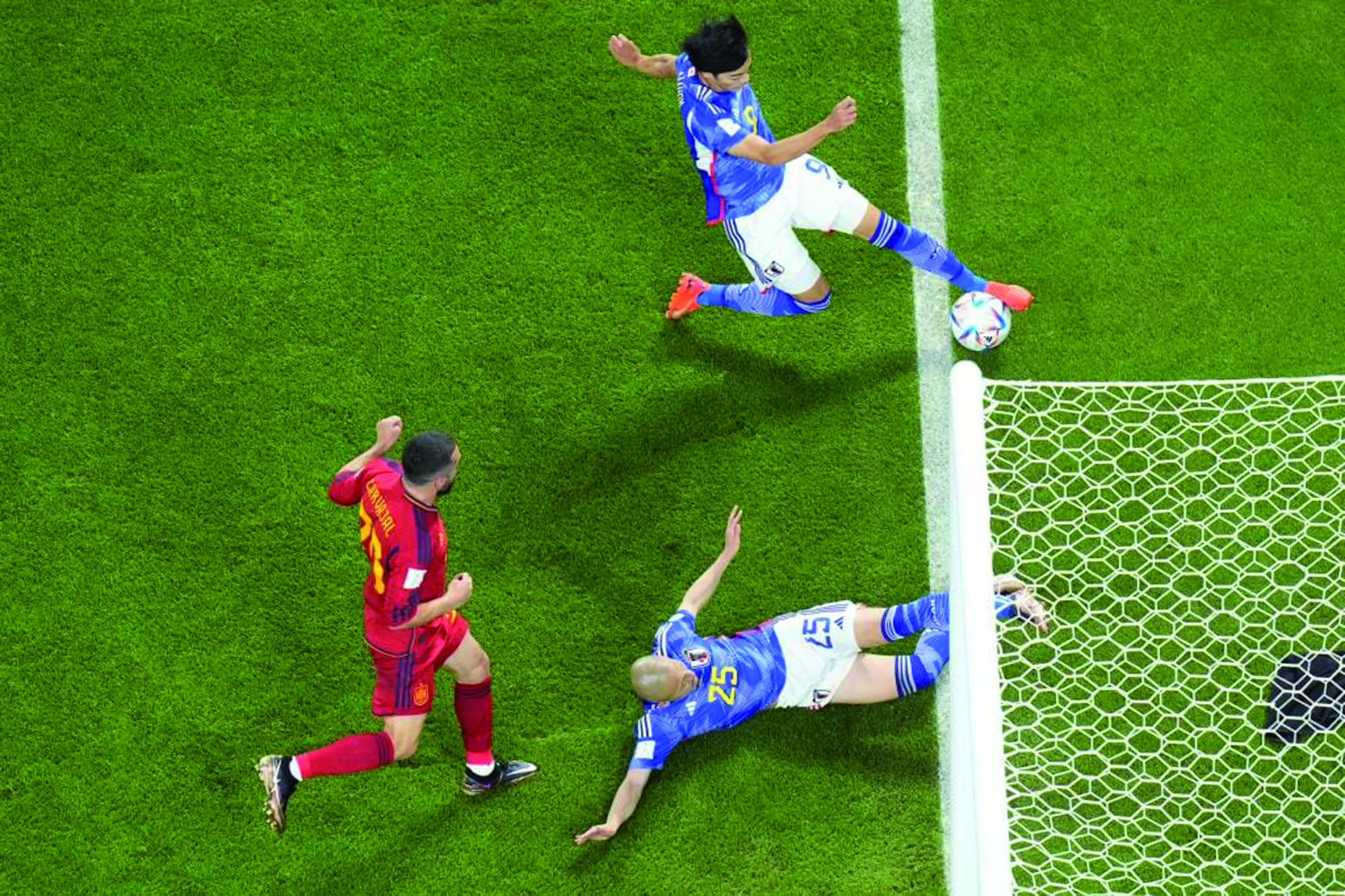 La tecnología validó esta jugada, con la que Japón dio otro batacazo en el Mundial (le había ganado a Alemania), venciendo 2-1 a España para meterse en octavos de final como líder del Grupo E. La pelota parece salir completa por línea de fondo, pero el chip que se encuentra dentro del esférico dijo lo contrario. España clasificó segunda y quedó eliminada Alemania, otra vez en 1ª ronda, y Costa Rica.