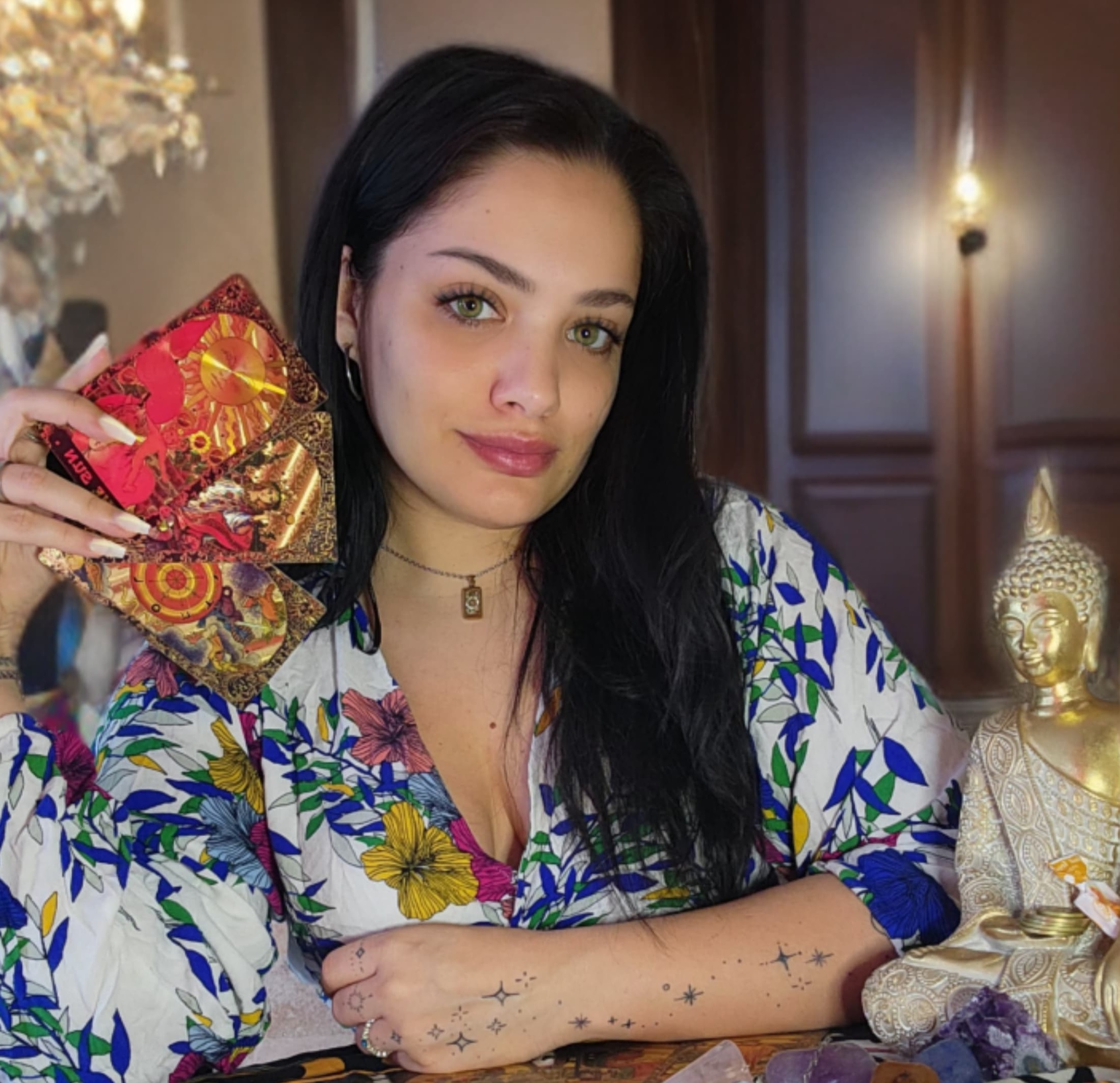 El interés de Camila por el tarot surgió en un momento difícil: en plena pandemia y tras la pérdida de su abuela, una figura clave en su vida. “Mi abuela y otros familiares tenían una conexión con lo espiritual, pero yo nunca había profundizado en eso. Todo cambió con la pandemia, cuando enfrenté momentos de soledad y tristeza con mi madre y mi hermana. Fue entonces cuando me encontré con las cartas”. Comenzó a estudiar a distancia, inscribiéndose en cursos con referentes del tarot y la astrología. “Recuerdo especialmente un curso con Laura Ferro sobre el Tarot Lenormand. Fue una experiencia muy enriquecedora que me motivó a seguir explorando este mundo.” Sin embargo, destaca que su práctica siempre ha estado orientada a ayudar más que a predecir: “Aunque el tarot tenga un aspecto predictivo, yo lo enfoco desde una perspectiva terapéutica, buscando acompañar a las personas en sus procesos emocionales y espirituales.”