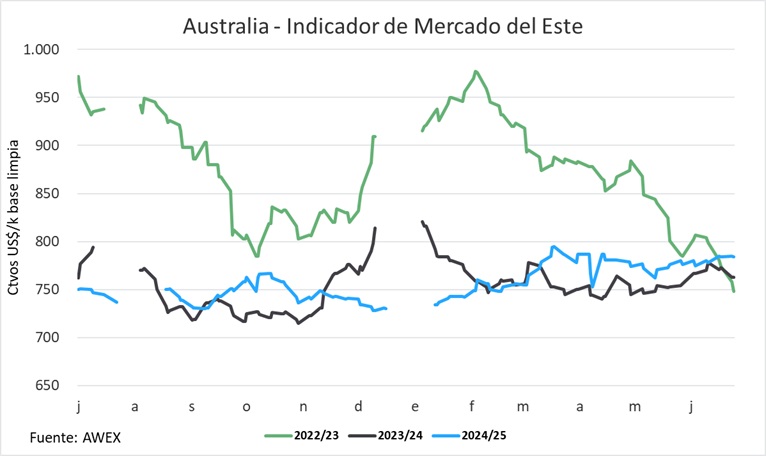 A lo largo de toda la zafra 2024/25, el IME experimentó un aumento del 5,7% en dólares australianos, pasando de A$ 11,42 en julio de 2024 a los A$ 12,07 centavos que cerró esta semana. En moneda estadounidense, el incremento fue más moderado, de 1,4%, cerrando en US$ 7,84 desde un inicio de US$ 7,73.