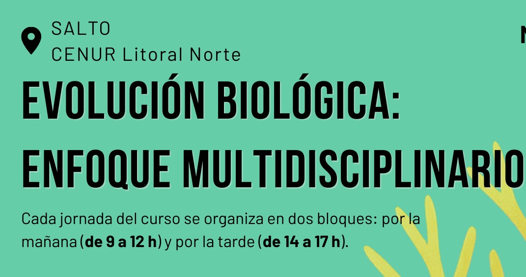 Del 3 al 8 de noviembre de 2025 en la sede Salto Cenur Litoral Norte, Universidad de la República, se estará realizando el curso de posgrado "Evolución Biológica: Enfoque Multidisciplinario". El mismo es promovido por la Unidad de Genómica y Bioinformática del Departamento de Ciencias Biológicas Cenur Litoral Norte Udelar y PEDECIBA, dictándose enteramente en la sede Salto Udelar.