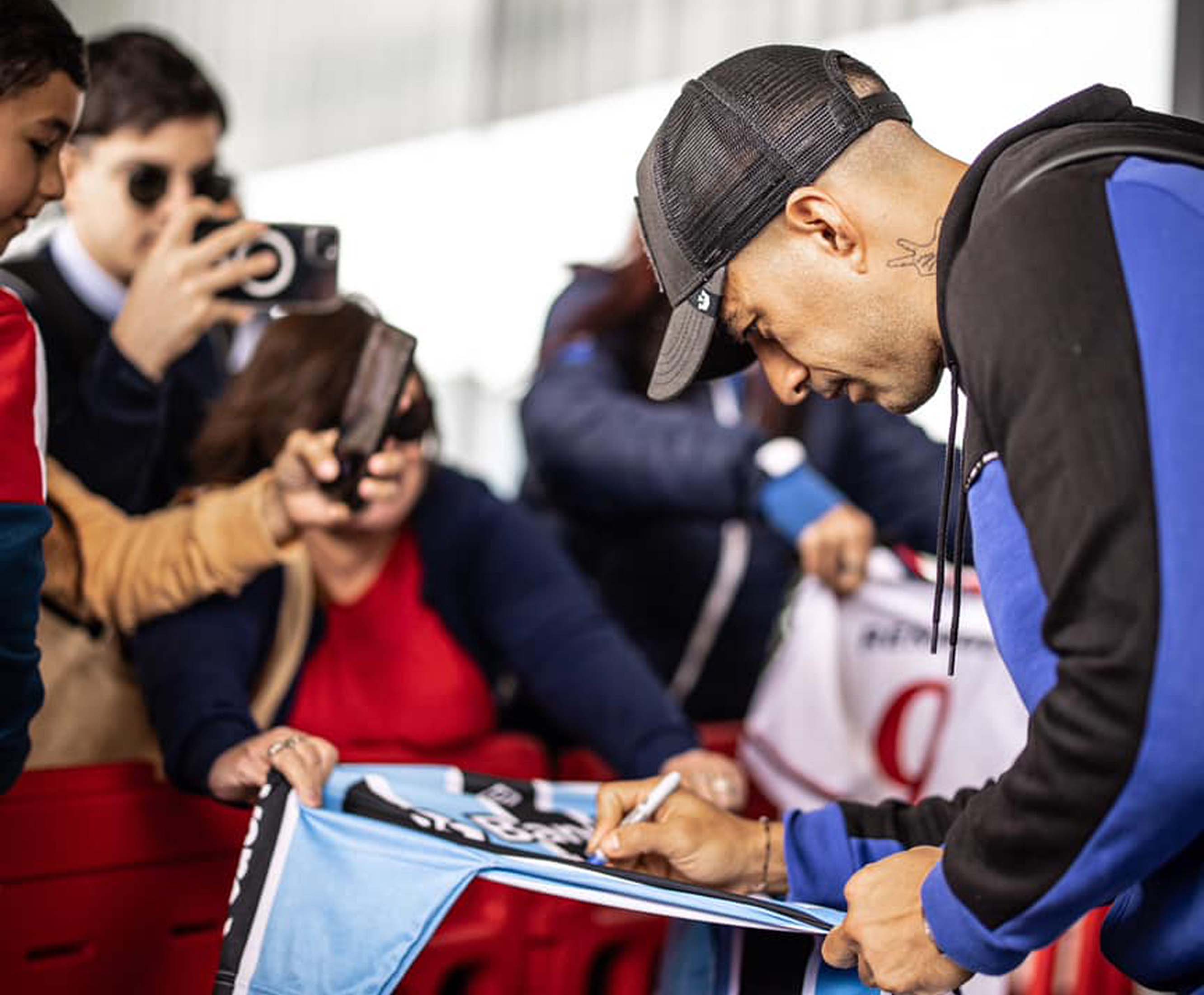 Era máximo goleador de Eliminatorias pero en esta edición lo superó Lionel Messi 31 a 28. El salteño arribo al aeropuerto de Carrasco, se sacó fotos y firmó camisetas entre decenas de hinchas.