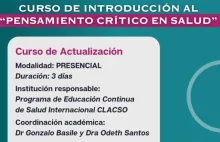 Los días miércoles 29, jueves 30 y viernes 31 de octubre, en la sede Salto del Cenur Litoral Norte de la Universidad de la República, se impartirá el Curso “Pensamiento crítico en salud” a cargo del Programa de Educación Continua de Salud Internacional CLACSO, Grupo de Trabajo Salud Internacional