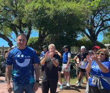 El intendente de Salto, Carlos Albisu, junto al coordinador de Deportes, Marcelo García da Rosa, participaron en la entrega de premios de la primera edición local de la correcaminata y maratón solidaria de 5K y 10K organizada por la Fundación Pérez Scremini, institución que trabaja a nivel nacion