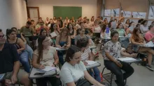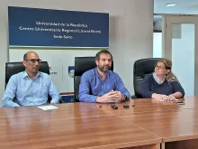 En conferencia de prensa realizada en la sala del Consejo del CENUR Litoral Norte, sede Salto, los docentes Mariano Suárez, del Departamento de Ciencias Sociales, Elena Alvareda, del Departamento de Agua, y Mauricio Cabrera, director regional del CENUR Litoral Norte, presentaron el lanzamiento de