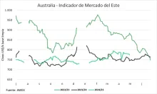 El indicador de carne ovina adulta (Mutton) en Australia experimentó un aumento de 63 centavos esta semana, llegando a 6,25 dólares australianos por kilogramo peso de canal. Estos precios son actualmente los más altos desde junio de 2022.