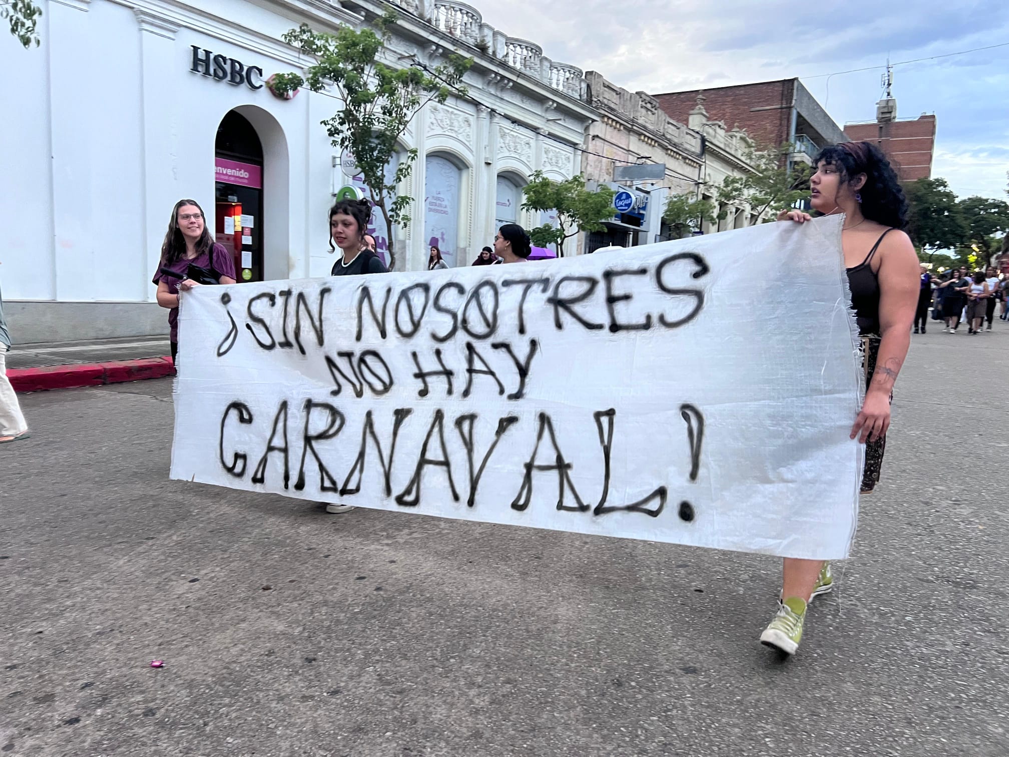 La proclama más dura llegó de la mano del Colectivo Revuelta, que rechazó cualquier intento de «festivizar» la fecha. «El 8M no se celebra, se denuncia», sentenciaron. El documento enumeró situaciones de desprotección estructural: desde el acoso policial a denunciantes hasta la impunidad de abusadores en instituciones educativas y religiosas, mencionando específicamente el caso del cura Juan José Sant’Anna.