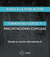 El Instituto Uruguayo de Meteorología (Inumet) emitió un aviso especial a la población por tormentas fuertes y precipitaciones copiosas. Un sistema frontal comenzará a ingresar desde la noche del martes por el suroeste, que se extenderá al resto del país durante la jornada del miércoles.