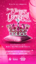 Son las últimas horas para la inscripción de aspirantes a reina del Carnaval de Salto 2026. Hasta hoy a las 15.00 horas hay tiempo para registrar los datos de las aspirantes a Reina, certamen que se llevará a cabo el próximo 24 de enero.