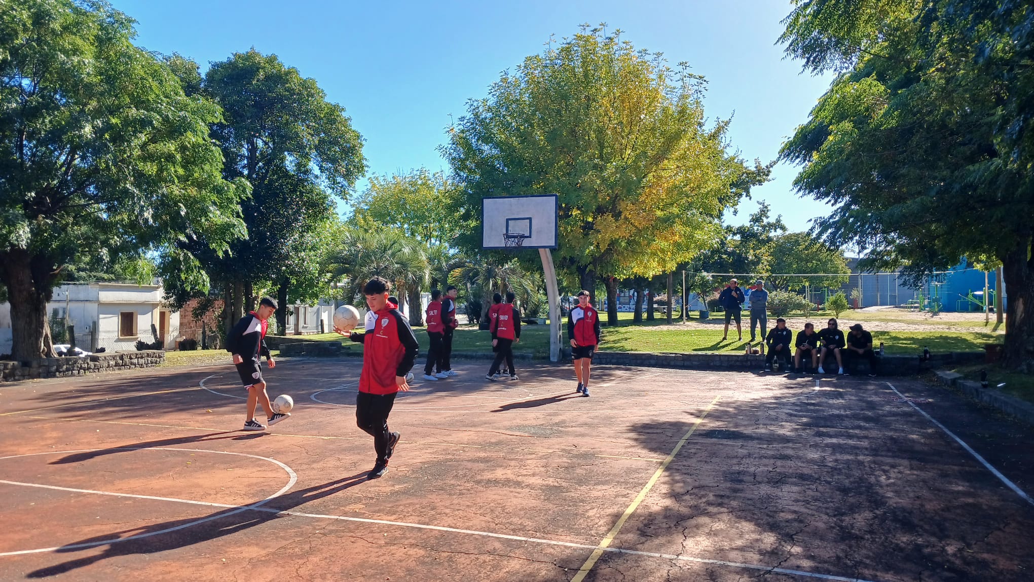 Los chicos salteños en un movimiento previo en Plaza de Deportes en Colonia antes de partir hacia el Supicci.