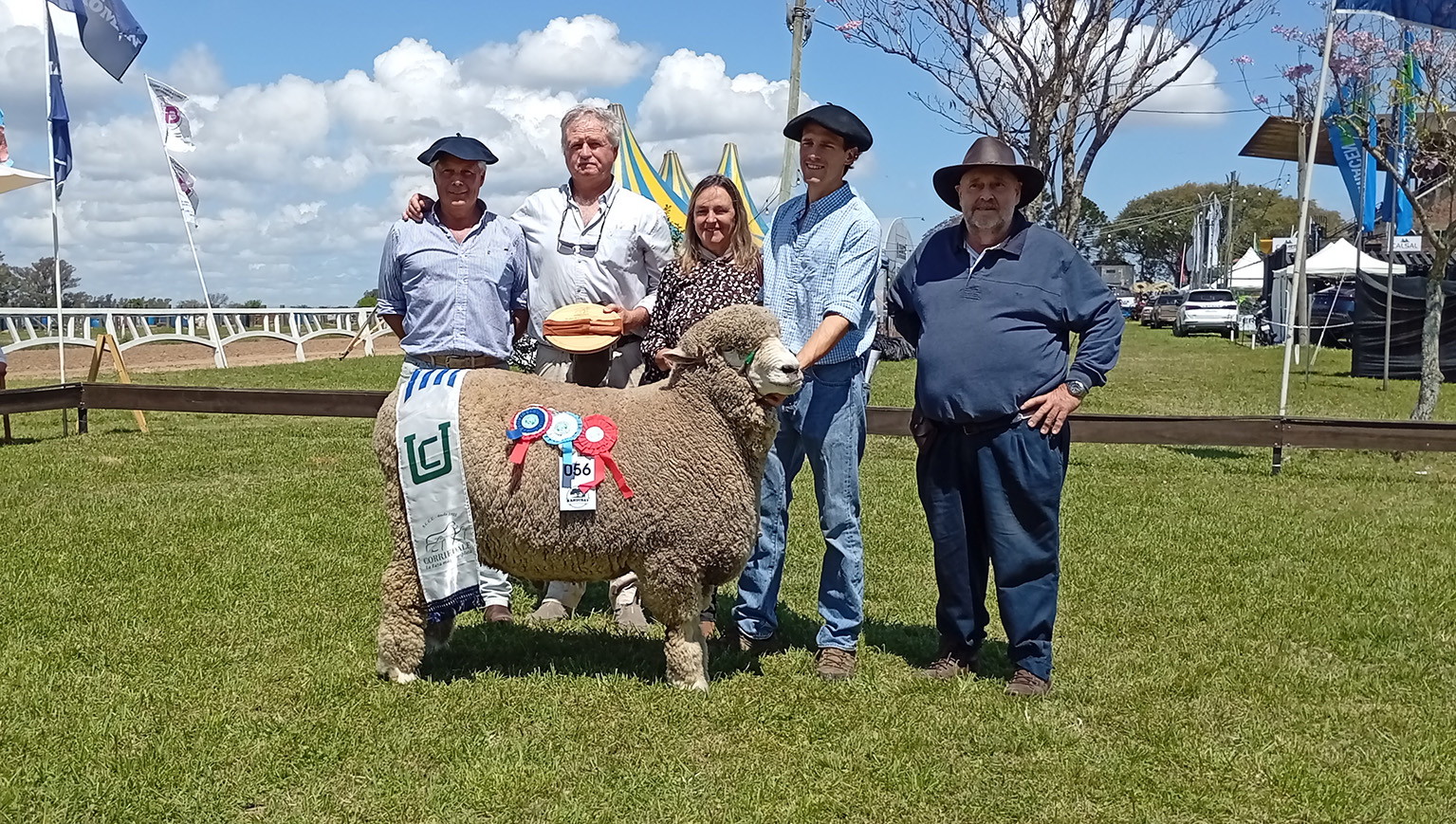 La premiación estuvo encabezada por el gran campeón, un carnero de la cabaña Stirling, que fue calificado como un ejemplar de referencia en el rumbo de la raza. “Es un carnero muy fino, con una gran estructura, creo que está en 25 y pocos micras con 140 y pico kilos. Eso marca realmente la tendencia que viene en la raza trabajando, apoyándonos con los datos de PD”, afirmó el jurado.