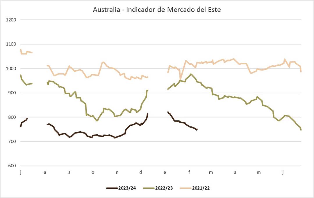 El mercado lanero australiano tuvo una semana de menos a más, donde el comienzo de la recomposición de la demanda china, tras los festejos del año nuevo, permitieron mejorar los valores y la competencia por aquellos lotes de mayor calidad. A pesar de la recuperación en la última jornada, el Indicador de Mercados del Este (IME), terminó con una caída ocho centavos en la semana.