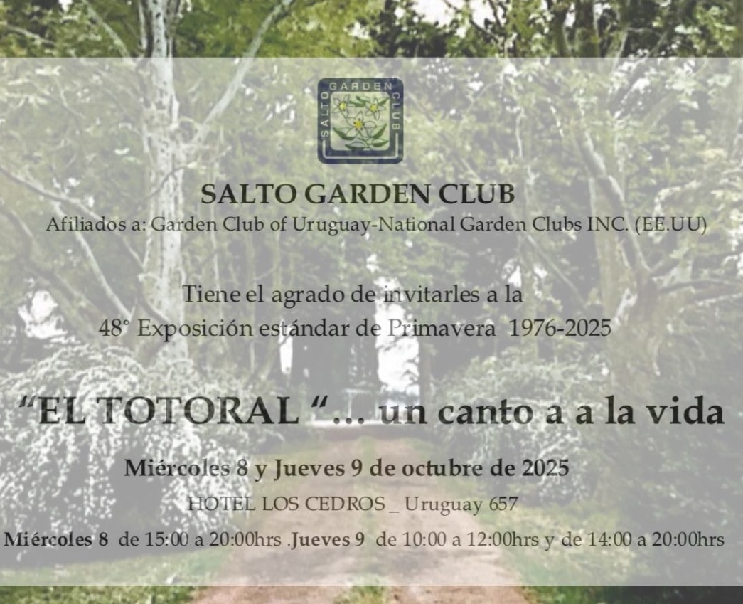 El próximo miércoles 8 y jueves 9 de octubre, el Salto Garden Club realizará su tradicional exposición anual de flores, que este año celebra su 48ª edición estándar bajo el inspirador título “El Totoral… un canto a la vida”. El encuentro, que combina naturaleza, arte y homenaje, tendrá lugar en el Hotel Los Cedros, ubicado en calle Uruguay 657, y promete ser una cita imperdible para los amantes de las flores, el diseño floral y las tradiciones del terruño. La actividad está organizada por los dos grupos que conforman el Salto Garden Club: “Mburucuyá” presidido por Alicia Ruiz, y “Los Azahares”, presidido por María Gabriela Invernizzi, que en dialogo con CAMBIO, nos cuenta detalles de esta jornada única en nuestra sociedad.